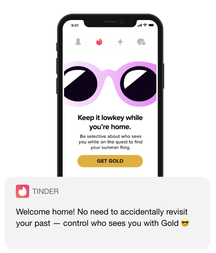 Okay so whenever I tell people I’m a copywriter at Tinder, after they say, “Oh my god that‘s so cool,” they ask, “But, like, what do you even write?” Well, this page is a good summation of what I do. I’ve been very fortunate to touch so many different types of projects. It would be nearly impossible to include everything I’ve written, so here’s a cute little peek into the last 5 years of my career.